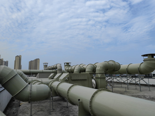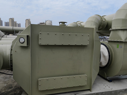 實驗室建設中的安防系統室有機廢氣治理 → 生物炭凈化器 → 引軸流風扇 → 排放量